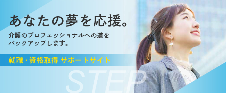 ステップは、資格取得だけの学校ではありません。「気づく」「学ぶ」「活かす」をモットーに、介護のお仕事に興味を持ったあなたとともに将来像を描き、理想の自分を実現するために必要な教育を提供し、そこで得た知識を活かせる職場をともに見つけ、いきいきと働き、明るい未来を築いていくお手伝いをしたいと思っています。